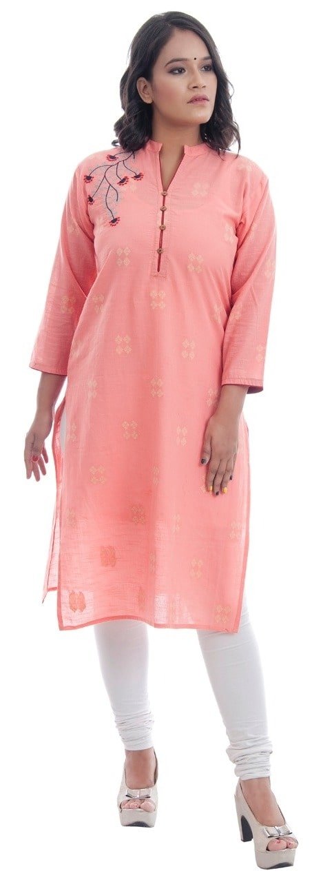 Description- Peach Cotton Kurti